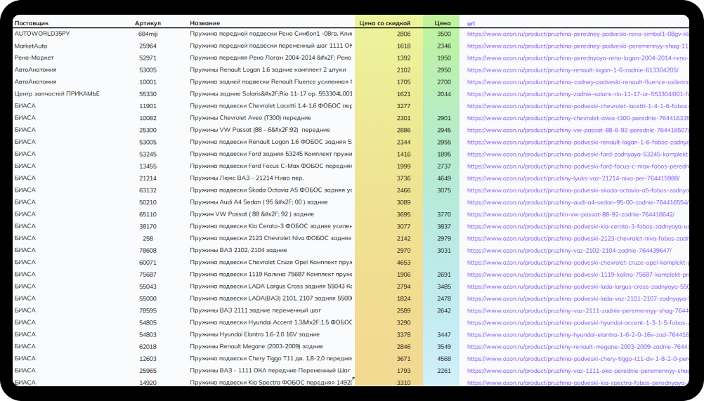 Сформируем данные под любые пожелания: по категории, производителю, региону и тд.